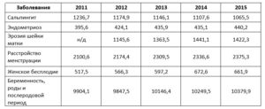 По данным исследований министерства здравоохранения Российской Федерации зарегистрированных больных страдающих гинекологической заболеваемостью женского населения в возрасте от 18 лет и старше представлены в таблице: