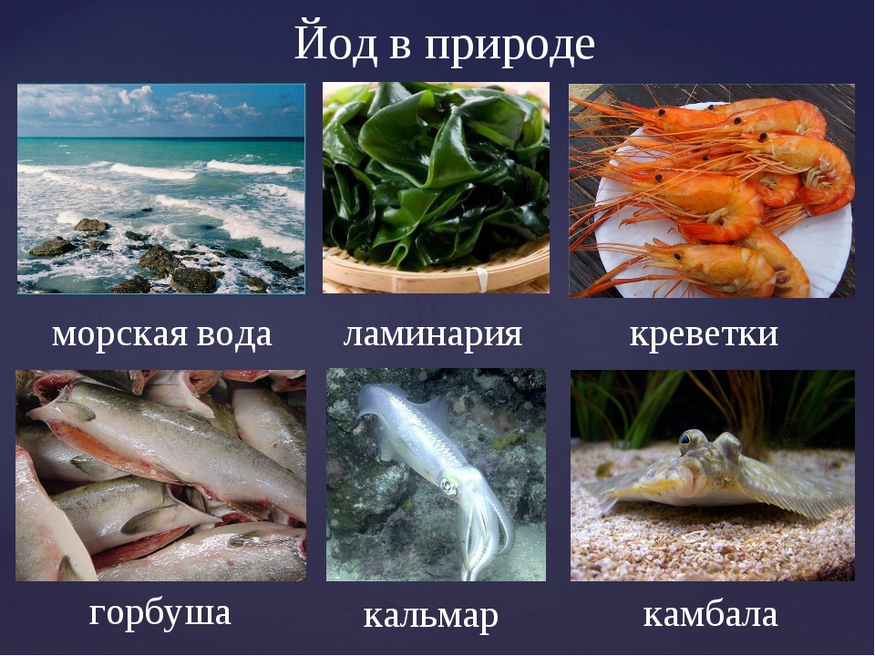 - Способствуют усвоению йода – железо, кальций, медь, цинк, стронций, витамины А и Е