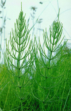 Хвощ полевой (Equisetum arvense) – оказывает противовоспалительное, бактерицидное, глистогонное действие, является источноком кремния, благодаря которому стимулирует регенерацию соединительной ткани и деятельность эндокринных желез.