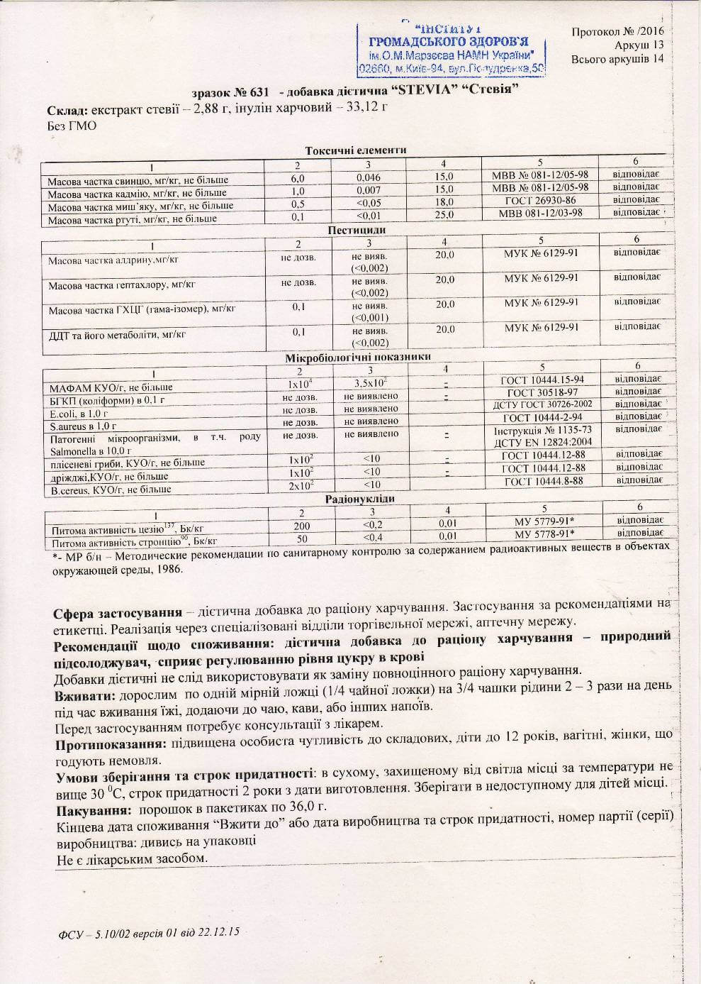 Безопасность Стевии: