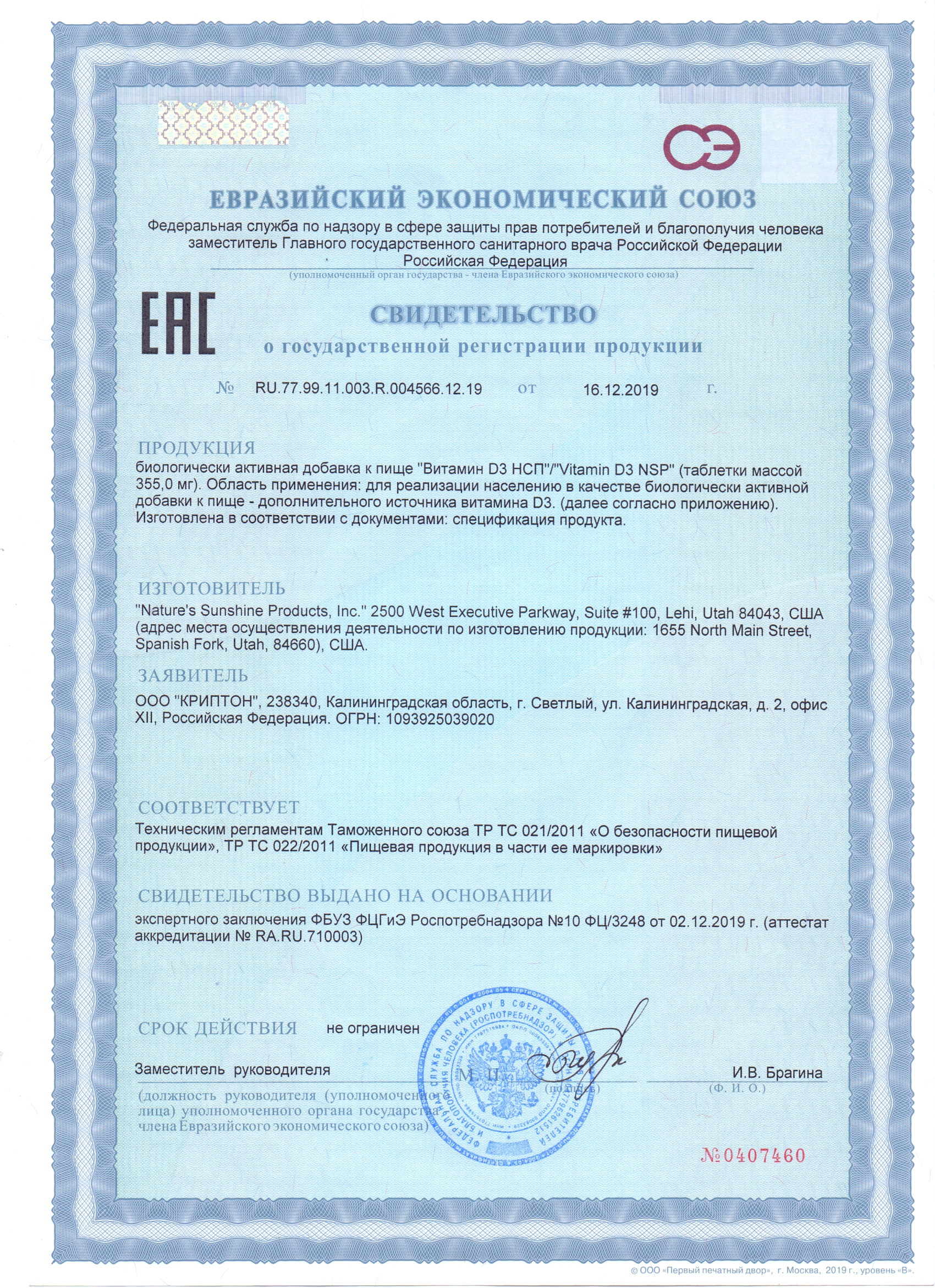 БАД к пище Витамин Д3 (D3) НСП является дополнительным источником Витамин Д3 (D3).