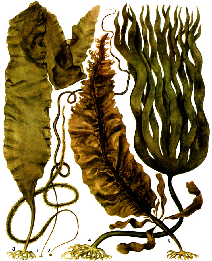 Бурые водоросли содержат йод и альгиновые кислоты.